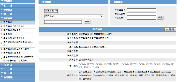 5.醫(yī)療器械注冊(cè)證書由國家食品藥品監(jiān)督管理局統(tǒng)一印制,相應(yīng)內(nèi)容由審批注冊(cè)的(食品)藥品監(jiān)督管理部門填寫,查詢結(jié)果如下:
